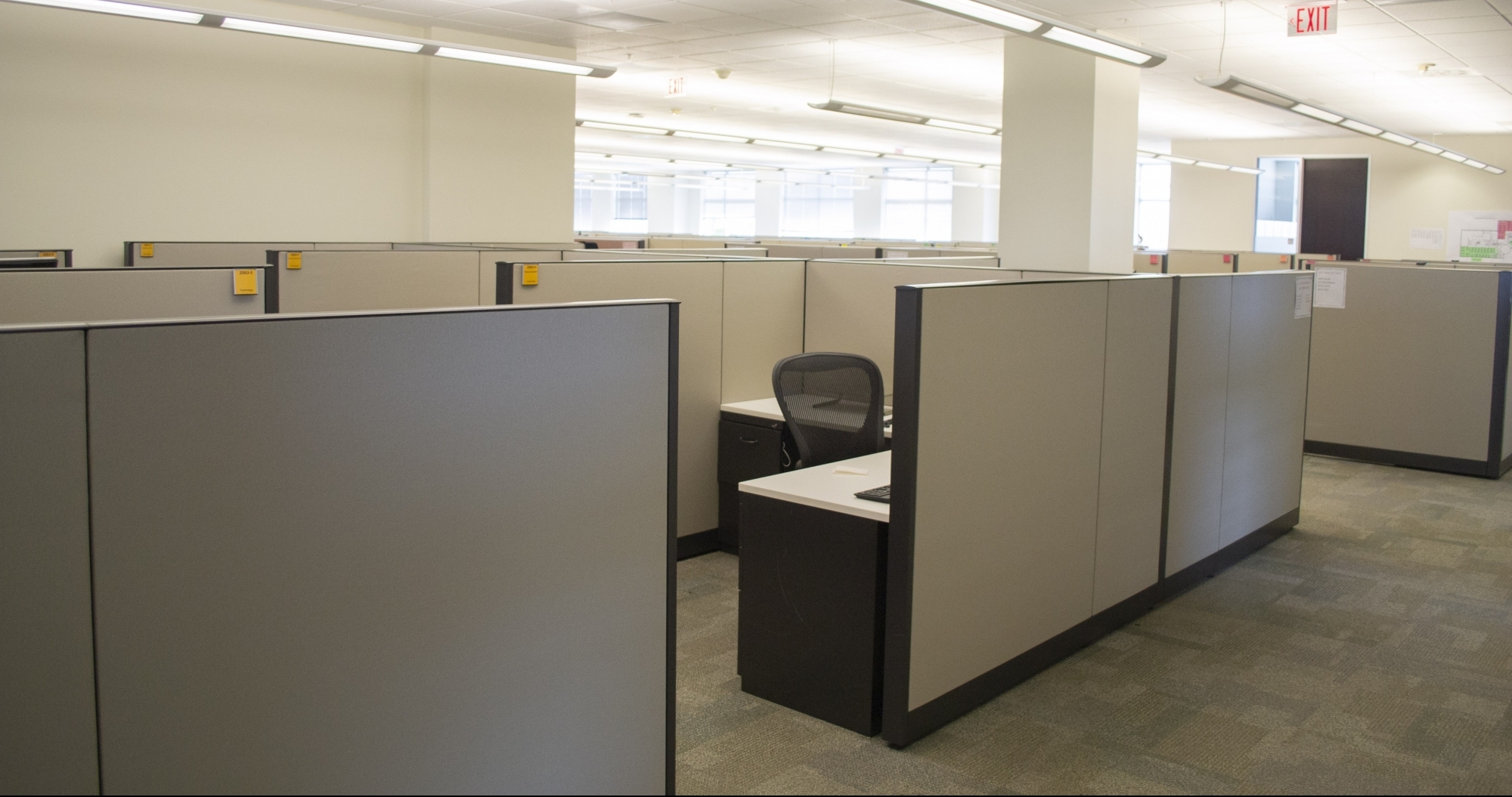 The full scope of work included: 4 floors, workstations, moved private offices, sound masking system, re-manufacturing of old workstations, new task chairs (Allseating). We provided project management the entire project, beyond our usual scope of work. We ran the show with immense help from Frank, the on-site PM. Reporting to the VP of real estate, Spencer + Company managed logistical coordination, acting as the owner’s rep. Our design team developed a solution to maximize their limited real estate while keeping all employees comfortable.